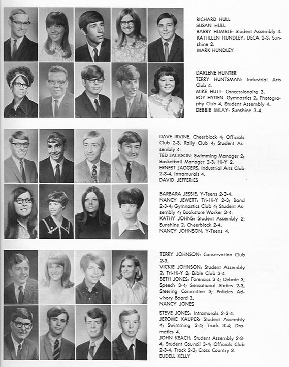 Richard Hull Susan Hull Barry Humble Kathleen Hundley Mark Hundley Darlene Hunter Terry Huntsman Mike Hutt Roy Hyden Debbit Imlay Dave Irvine Ted Jackson Ernest Jaggers David Jefferies Barbara Jessie Nancy Jewett Kathy Johns Nancy Johnson Terry Johnson Vickie Johnson Beth Jones Nancy Jones Steve Jones Jerome Kauper John Keach Eudell Kelly