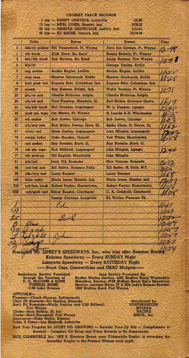 If you have michiana vintage racing photos for our page, please send us an e-mail message.