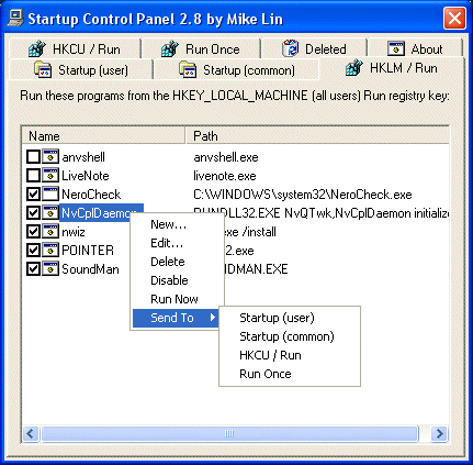 Startup Control Panel is a nifty control panel applet that allows you to easily configure which programs run when your computer starts. It s simple to use , very small and won t burden your system. A valuable tool for system administrators! (once installed, you can access it from ...the Windows Control Panel). This is an excellent tool for managing programs that are started automatically.