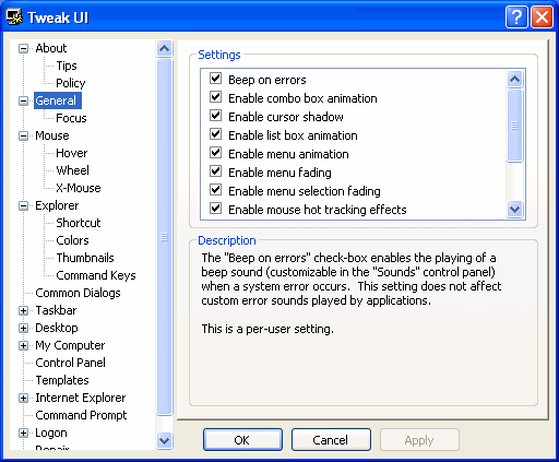 TweakUI XP - tweak Windows XP settings