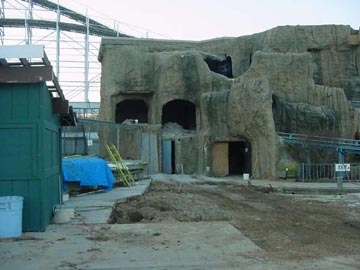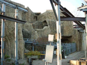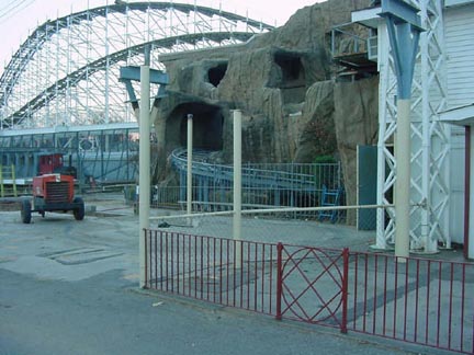 Superstition Mountain was built in 1979. The ride has provided thousands each year with its unique thrills, but now it sits in disarray. The station for the Superstition Mountain is gone, much of the track has been removed and the 3rd and 2nd floor rooms have been gutted. Eventually CCI will work their magic and turn this old building into a new thrill. This ride will have a vertical lift that rises above the mountain, reaching heights of 40 feet. A holding brake at the top of lift will detain riders until the car gets clearance. The ride will connect with existing track that extends over the water by the Antique Auto ride. After the water drop the coaster will enter the 3rd floor and coast throughout the building. Area has been cleared at the back of the Mountain where the ride will exit and reenter the Mountain through new openings. Some elements within the ride will remain like the spinning tunnel and the train and the end of the ride. The track will consist of 5 layer laminated wood and be somewhere between 1000-1200 ft. long and reach speeds of 30 to 40 mph.
