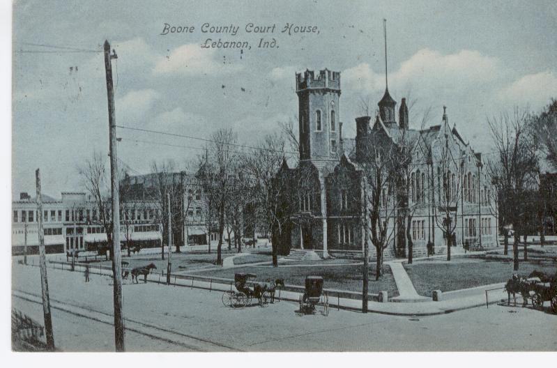 A 1908 postcard shows the previous courthouse. County Number: 6 Seat: Lebanon (1833 - present) Jamestown - (1831-1833) Built: 1909-11 Cost: $265,000 Architect: Joseph T. Hutton (Hammond) Builder: Caldwell & Drake (Columbus) Style: Classical Revival Population - Boone County (2002): 48,277 Population - Lebanon (2002): 14,222 Size: 422.9 square miles Date of Organization: April 1, 1830 Named for: Daniel Boone Dates visited: 9/20/2003 Courthouse address: One Courthouse Square, Lebanon, 46052 Go Back ||| Forward Home |