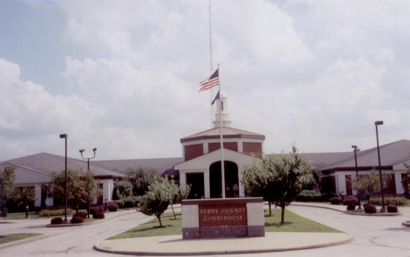 This undated postcard shows the old courthouse in Cannelton which was used until 1994. Now, it is home of the Perry County Museum. County Number: 62 Seat: Tell City (August 15, 1994 - present) Troy (November, 1814 - January 10, 1818) Rome, first called Washington, then Franklin, then finally Rome (1818 - December 7, 1859) Cannelton (December 7, 1859 - August 15, 1994) Built: 1992-94 Cost: $2.6 million Architect: Andrew Churchhill, United Consulting Engineers & Architects (Indianapolis) Builder: ? Style: Modern Population - Perry County (2002): 18,827 Population - Tell City (2002): 7,755 Size: 381.4 square miles Date of Organization: November 1, 1814 Named for: Commodore Oliver H. Perry Dates visited: 8/3/2003; 8/28/2004 Courthouse address: 2219 Payne Street, Tell City, 47586 Go Back ||| Forward Home |