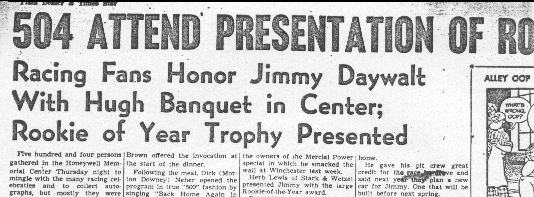mostly they were there to honor Wabash’s Jimmy Daywalt, Speedway Rookie of the