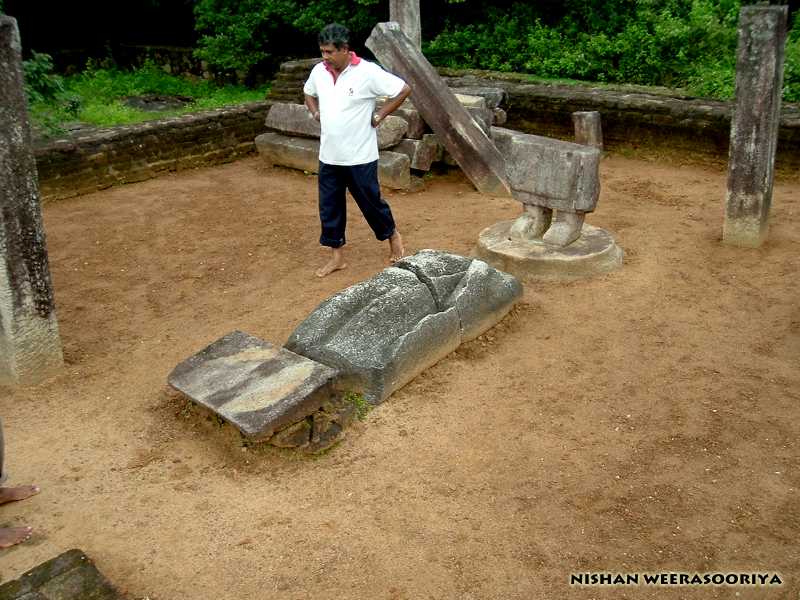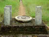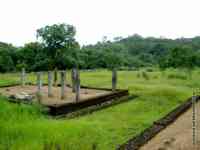 Namal Pokuna Aramic ComplexThis viharaya is situated on same road leading to the famous Dimbulagala Raja Maha Viharaya from Pollonnaruwa but few kilometres before. This is also built on the same rocky mountain range which Dimbulagala stands but this place seems to be rarely visited. Therefore the unspoilt nature and the ancient monuments standing alone inside the forest makes this a very enjoyable trip. At the entrance are newer buildings. From here you have to walk about ¾ kilometres towards the top of the mountain. There are few places you have to climb, but generally it’s a pleasurable walk with a mild climb. We were also accompanied by the temple dog all the way to the top and directed us when we were not sure which way to go. (we were the only people there) Once we were at the top, he directed us to all the monuments one by one and came down with us. Passing the main site, there are caves which priests sat in meditation and a pond, but this area has not been cleared and is covered by jungle. Unlike Dimbulagala Raja Maha Viharaya which is now renovated and lost its ancient look, this temple has gone through very minimum restoration just enough to stop further destruction. ArticlesDimbulagala Raja Maha Vihara & Forgotten frescoes at Pulligoda Galge - Daily Mirror Other Sites Around Namal Pokuna