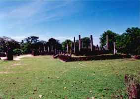 Oth PilimayaThis building has been built by Nissanka Malla (1187-1196). The most important feature of this buiding is the shape and the carvings of the stone pillars. These pillars are carved in the shape of a lotus plant and are curved in three places. The top of the pillar take form of a lotus flower. On the centre is a small Stupa. The whole building is surrounded by a fence made out of stone.