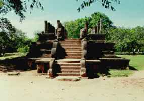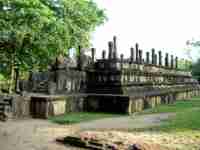 Built by king Parakramabahu this structure is situated in front of the palace. Built on 3 layers of solid rock, the border of the first layer is decorated with carved elephants each in a different posture. Second layer border is carved with figures of lions and the last layer with images of “wamana”. The entrance to the building is through two beautifully carved lions. The roof has been supported by 48 beautifully carved stone pillars laid in 4 rows. To the south-east of the court there can see the remains of an ancient toilet.