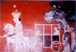 The Portuguese, during their invasion into this area in the 16th century are said to have disfigured some of those mural paintings and on the entrance doorway to the image house of the len vihara. They had mercilessly disfigured the paintings on the doorway depicting a doratupala. This doratupala figure is daubed and instead a Portuguese soldier armed with a sword stands. Some of the Vessanthara Raja’s mural paintings are also disfigured. Instead there appears Vessanthara Raja wearing socks and shoes. The doratupala is the divine guardian of a doorway. (See pictures)