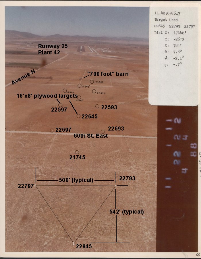 agricultural area to the east of runway 25 at Plant 42, each carefully surveyed to permit measuring the