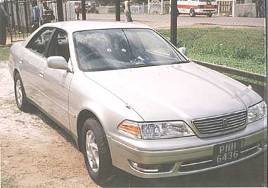 Inniss sat waiting in the parked car, a white motor vehicle, licence plate