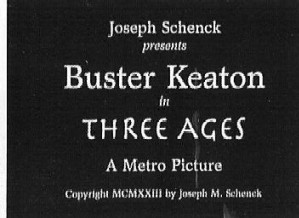 Three Ages was a huge hit in its day and still plays as a better-than-average Keaton comedy; unfortunately, much of it isn't really "Keatonesque" and is more funny/cute than funny/ha-ha. The movie tries to score many of its laughs simply from ancient-to-modern anachronisms, a route to laughs that has been worn thin by generations of cartoons such as "The Flintstones." (One of the movie's funnier anachronisms, because it still rings so true, is of the seer who goes outside to post his weather forecast of "fair and sunny," only to have to abruptly change it to "snow" when he is hit by a cold front at the front door - proving that weather forecasters weren't any more reliable 80 years ago than they are now.)