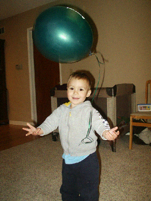 Hey, balloons are really cool. He isn't old enough to teach how to suck the helium in so he can talk like Mickey Mouse (or Mike Tyson), but hey, what's growing up all about, hm?