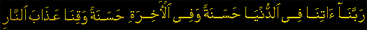 "Rabbanaa atena fidunya hasanatawn wa fil akherate hasanatawn wa qena a'zabannar." - (Our Lord! Give unto us (that which is) good in this world, and (that which is) good in the Hereafter, and keep us from the torment of the Fire.