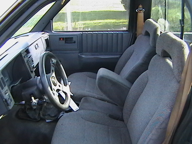 Interior Accessories.....96 S10 Seat, Grant GT Steering Wheel, updated and new dash, custom painted the dash and doors from factory grey to black, and dyed the carpet from factory grey to black.