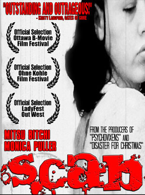 ![]() | SCAB (2004) Written and Directed by Andrew Shearer CAST: Monica Puller, Mitsu Bitchi, Santiago Velasquez and Natalie Cardona. SYNOPSIS: An aspiring young country music singer's body slowly becomes ravaged by bloody scabs as her overbearing, alcoholic mother insists on training her to be a professional wrestler. STATUS: DVD now available! Click here for details. View stills from the movie Gates Of Gore Review Creature Corner Review NOTES: This film was partially inspired by the French indie film "In My Skin" by Marina De Van. Premiered at the Sprockets Film Festival (Athens, GA) June 2005. |
