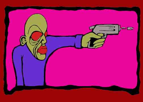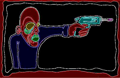 Retro Gothic Guy holding a gun with a different color scheme inverted