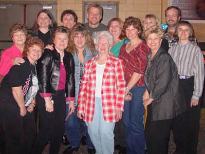 |                 Phil with IndyPhilPhan Sign | Front: Sandy, Elaine, Julie, Jane, Vicki, Linda, Stephanie Back: Dottie, Carol, Susan, Phil, Rhonda, Diana, Gail | |