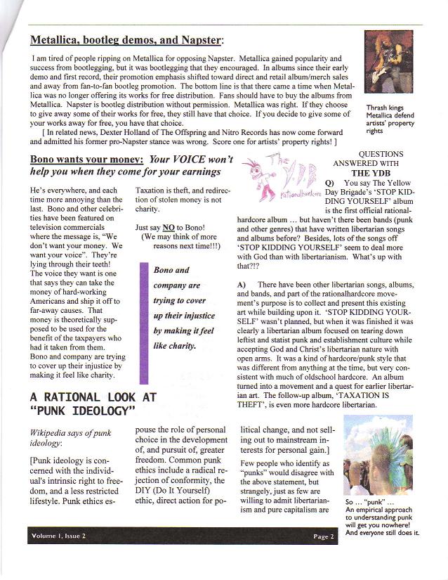 Q) You say The Yellow Day Brigade’s ‘STOP KIDDING YOURSELF’ album is the first official rationalhardcore album … but haven’t there been bands (punk and other genres) that have written libertarian songs and albums before? Besides, lots of the songs off ‘STOP KIDDING YOURSELF’ seem to deal more with God than with libertarianism. What’s up with that?!?