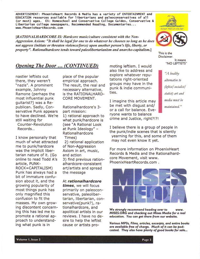 1) rational approach to what punk/hardcore is 2) rational application of Non-Aggression Axiom in art, music, and action 3) find previous rationalhardcore-consistent art/artists and spread the message