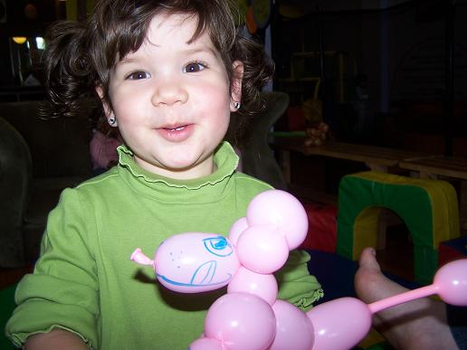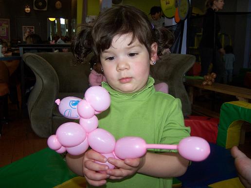 ...and gets her first ballon animal