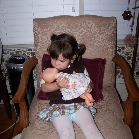 Kissing the baby (Liz's childhood doll)