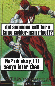 All images were taken from various non-sport cards, ranging from Marvel Universe 1992 to Marvel Masterpeice to the OverPower Card game. Also Morgan Thomson bought all of the cards so if it's illegal to edit pictures of them, he is compleatly unaware. So he'll plee ignorance.