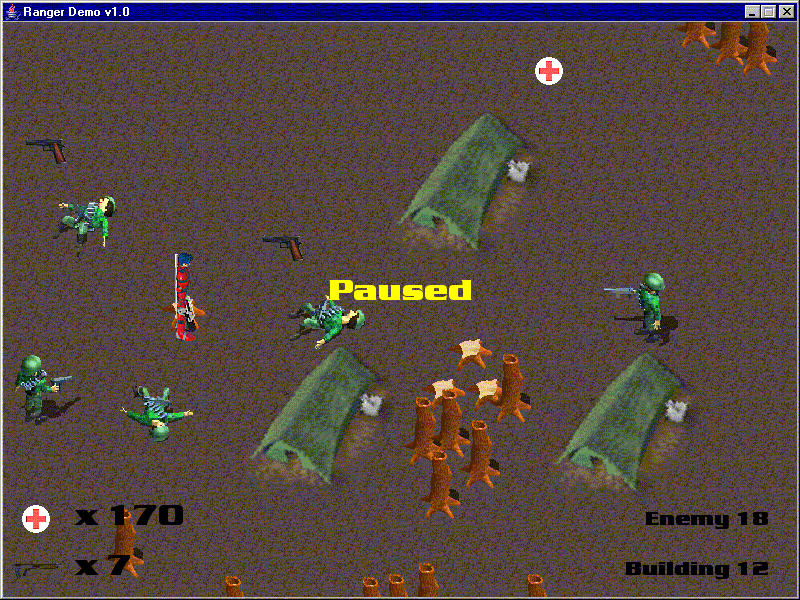 Isometric view shooter game. You control a ranger through 5 level's killing all enemies that get in the way. Includes a cheesy story line and various weapons.