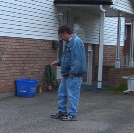 this picture, as well as the next picture, i took a few days after i got my digital camera. i was going for a walk by his house and he happened to be outside smoking so i got these wonderful shots.