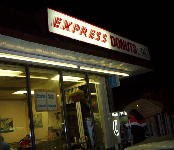 express donuts has also been know to perform miracles on people. when a crippled man was eating a donut from express donuts, he miraculously stepped away from his walker and ran out a cured man.