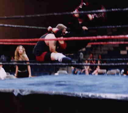 kick", and a twisting sitdown powerbomb