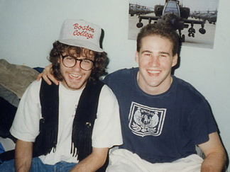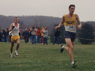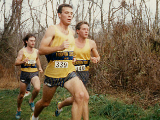 Fuchs just before a relay during an indoor track meet, fall 1989.