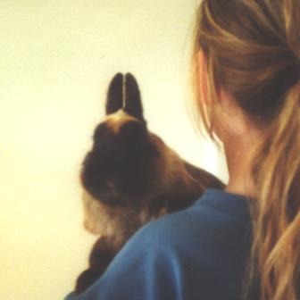 With Fergus, it's all about the food. His favourite meal is seeds - he hangs out all day for his evening bowel of assorted fruits and seeds - but he'll happily accept any odd vegetables that pass his way. Lettuce is a favourite, as is corn. He could munch on a good cob of corn for hours. Fergus is also a bit of a homebody. He knows the smell of his hutch, and seems to have an inbuilt clock to tell him when it's bedtime, as he'll come hopping into his hutch almost by himself, and get started on his seeds. His second favourite activity after eating is digging! Not in the dirt though, heavens no, his paws might get dirty! What Fergus really loves to dig in is his hay, in his hutch. He rearranges it in quite an organized fashion every night. Of course, we put fresh hay in every night, into the sleeping quarters where it's supposed to be - and by morning, Fergus has done his work and undone all our work, by digging all of the hay outside into the eating area! Fergus is also the most relaxed of the rabbits - he actually enjoys a good cuddle with his mommy, unlike Zander. Fergie will rest on your shoulder, or cuddle down in your lap to watch TV; whatever you want to do is fine by him!