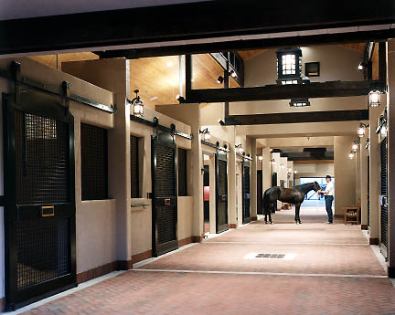 Our stallion barn is perhaps one of the more visually pleasing of all the stables, though each is uniquely elaborate. Every stall is an extra-large box stall to better provide for our stallions, and the stable is as practical as it is lovely.