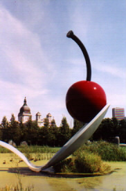 This is the Oldenburg Spoon Bridge. Huge! Tantalizing! I didn't even know it was a fountain too...very subtle, the cherry stays glisteny wet all of the time!