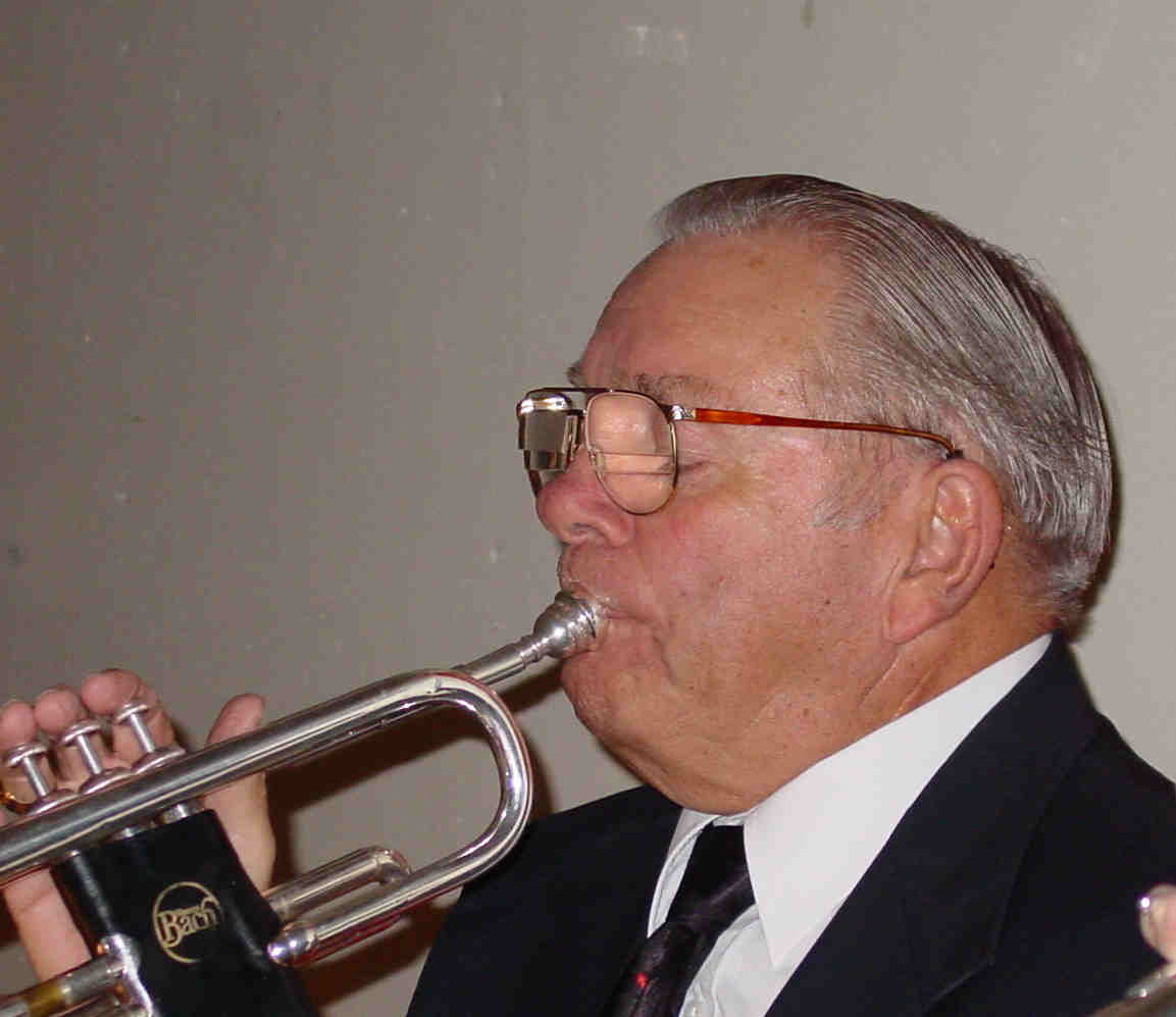 When Ken retired, Gene Markley took over the management of the band. He is also the man who kicks off the band. Gene plays the solo chair in the Trumpet section. Gene is also the leader of the smaller group called the Skylarks, who also are represented on this site.