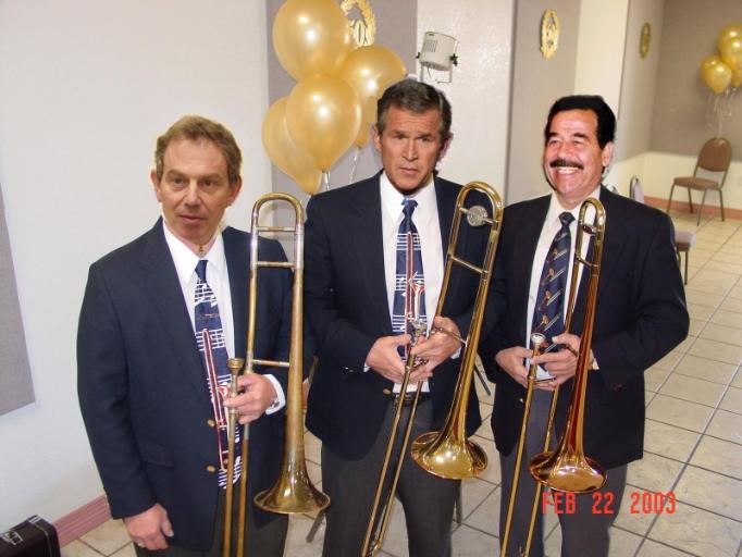 The Trombone section above played the soundtrack of Planet Of The Apes.Look at the slides on