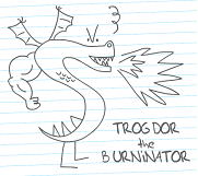 The winner of this competition will receive absolutely nothing. Do not expect a prize. This is just for fun. All Trogdors received by myself will be put up along with your name if you wish. Simply e-mail me your Trogdor at Jdn2001a@aol.com. Please include your Trogdor inside of the e-mail, as I will only open attachments from people I know. Label the subject of the e-mail "Trogdor". I will put your Trogdor on the site along with your name and any other information you request to be put on there. This is just for fun, so have fun. This site is in no way affiliated with www.homestarrunner.com.