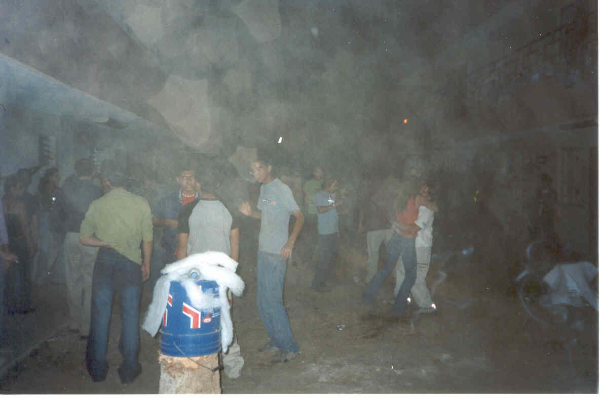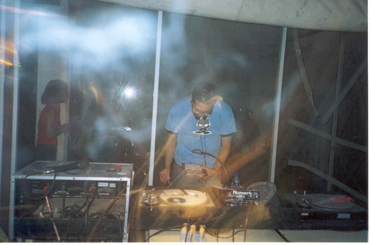 A mitad de la noche llegó mi amiga y excompañera de prepa Lorena Vargas, que venía acompañada de su primo "El Dice", con la buena nueva de que nos quería apoyar en la mezclada. Desde luego que se le dió un espacio para que les tupiera aún más duro con Psycodellic ya más Hardcore y los chavos estaban que no se la acababan. . . . Creo que cada vez fue subiendo de tono y yo no veía que la gente se fuera a ir algún día del local, lo cual me tenía totaaalmente contento, pues pese al polvo levantado y a lo disparejo del patio, estaban incontenibles y rebozantes de buena vibra disfrutando del show que les preparamos con nuestros 6 performers profesionales, que con fuego y con glowsticks invitaban a viajar en el mundo cinético a sus espectadores.