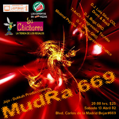 El ambiente estaba hecho... El sonido era muy de mi gusto y la acústica en el hotel hacía vibrar todo el derredor. Dió inicio a la noche -majestuosamente- nuestro DJ local: Luis Silva -lego- o también conocido como "el Trip" con su potente "drum and bass" Luego de dejar el público prendido y listo para danzar sin parar en toda la noche, le dejó espacio al primer Queretano DJ Bugz quien aceleró un poco más a los asistentes con su Techno Trance y algo "progressivón, después de movilizar a los chavos del sonido para que consiguieran un cajón de repuesto (tronó los agudos de uno de ellos) le pasó la bolita al DJ Daffer, quien no pudo clavar casi su dark progressive pues andaba tan acelerada la banda que les recetó minimal psychodellic y algo de Goa. De ahi no se pudo salir.