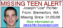 You can help find Joe Pichler by placing Joe's banner with a link to his site. (Please link the banner to his official missing person website at http://joepichler.4ourangel.com)