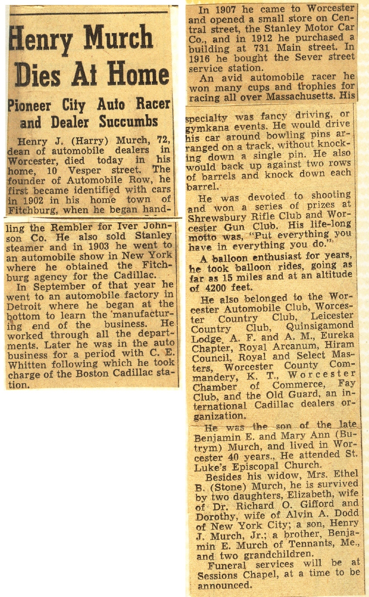 Born on Berry Street, Fitchburg Mass. on October 28, 1875 and died on February 6, 1948. He was Christened on September 7th, 1879 with his brother Mark by Rev. G. Scott at Rollstone Church in Fitchburg, Mass. He was buried at Worchester. He was married to Ethel B. (Stone) Murch on June 14, 1911 in Westboro, Ma. He had four children: