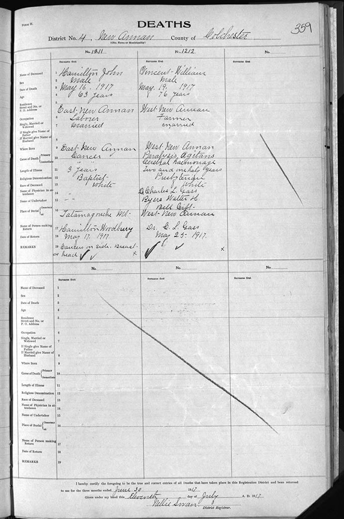 He was born in 1856 and died from cancer in May 16th, 1917 from cancer. His second married was to Jennie Chaples on January 13th, 1900.