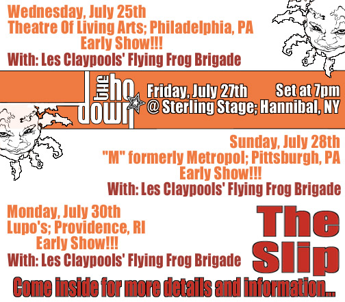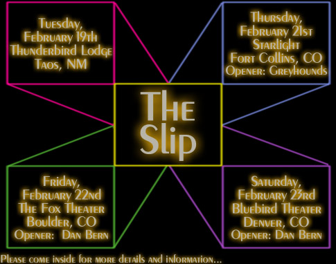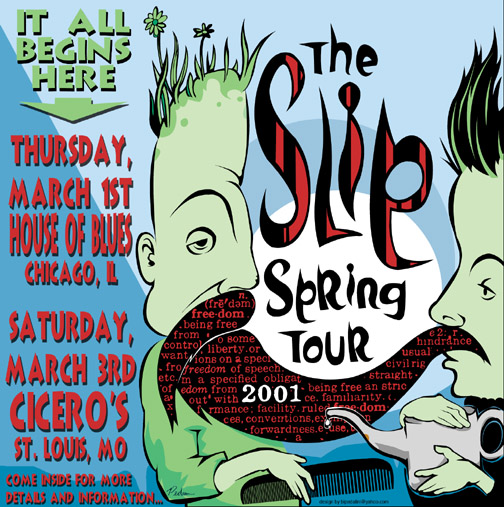 For the old site design of www.theslip.com I was making a new splash page for every region being hit by the tour. Here are a few samples: