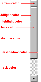 should effect the colors of all the scrollbars on you page unless you used I-Frames. After each ":" OR the "#" sign, place the number of your color for that position. For example, say you wanted your arrow color to be purple. You would look where it says "scrollbar-arrow-color:". Well there are several shades of purple, so you could go to