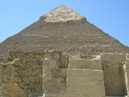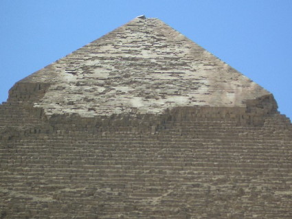 The smooth limestone covering the top of this pyramid once covered the whole thing, as it did with the other pyramids. The pyramids were meant to be smooth and shiny, but over the years, thieves came and took bits and pieces away for their own purposes.