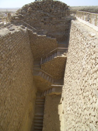 This is from the bottom of the entrance to the tomb looking up the 'stairs' they put in. The opening is only about 4 foot by 4 foot.