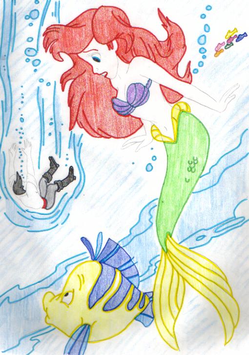 Ariel notices someone drowning! It's Prince Eric! Save him!