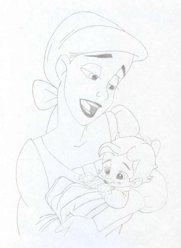 Baby Melody chews contentedly on her locket while Ariel sings to her.