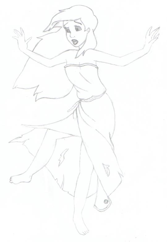 In a VERY stylish sail-dress, Ariel tries out her new human legs.