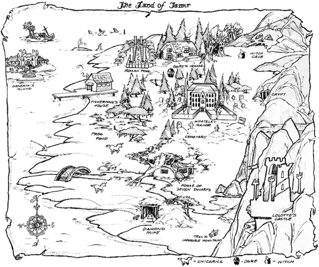 A map of the land of Tamir as seen in King's Quest 4.